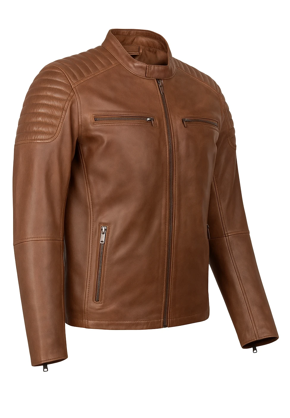 Chaqueta de Cuero Marrón Harrison Hombre – Auténtica Biker