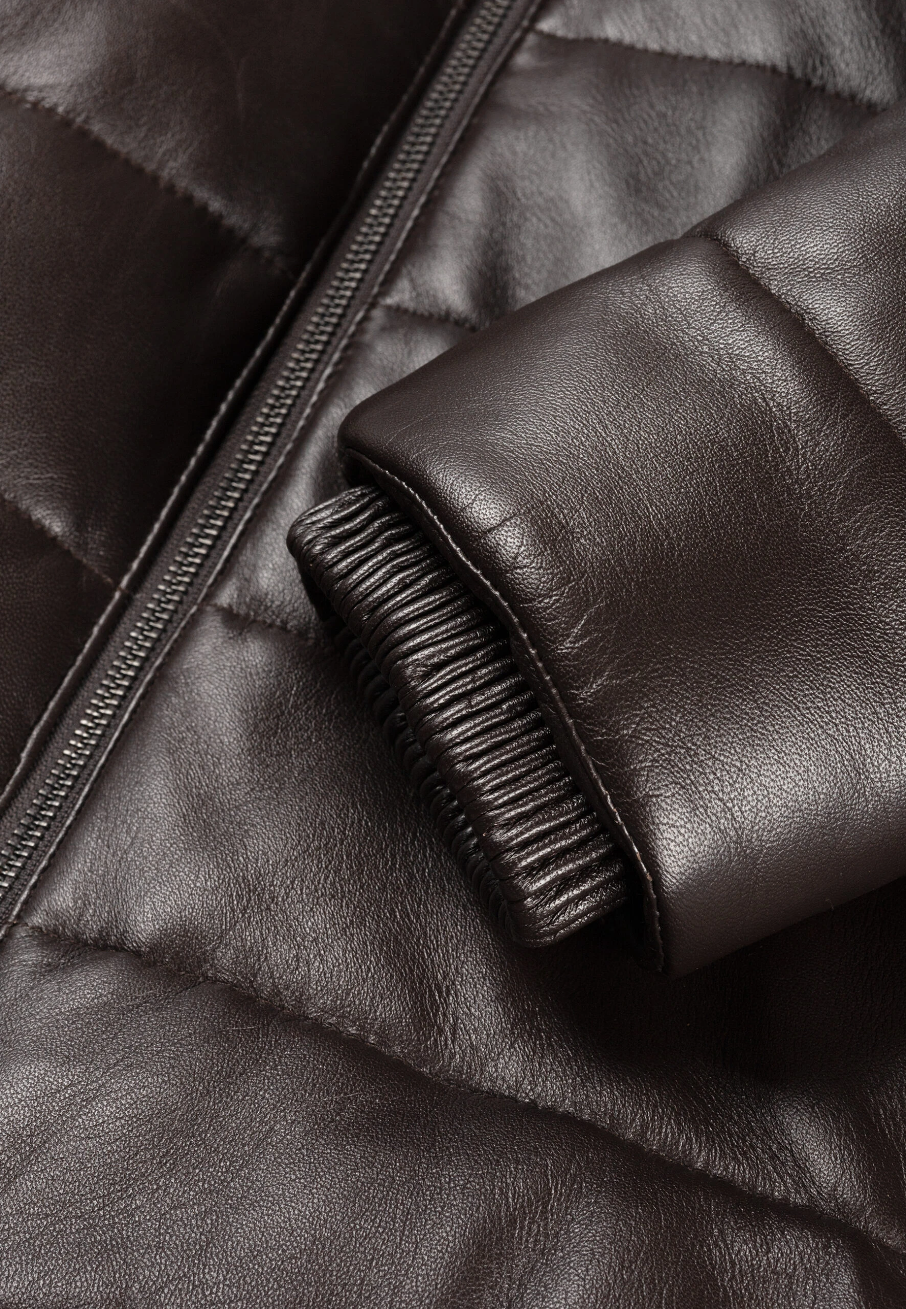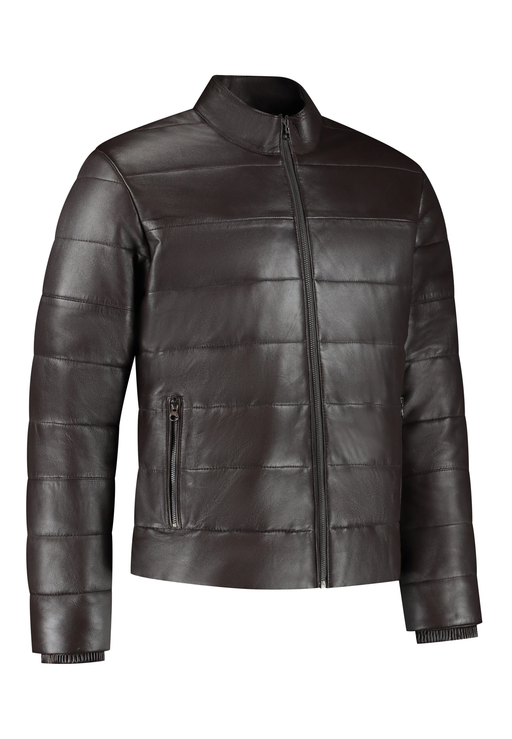 Men’s Puffer Leather Jacket – Venusio – Chocolate Brown Slim Fit Bomber