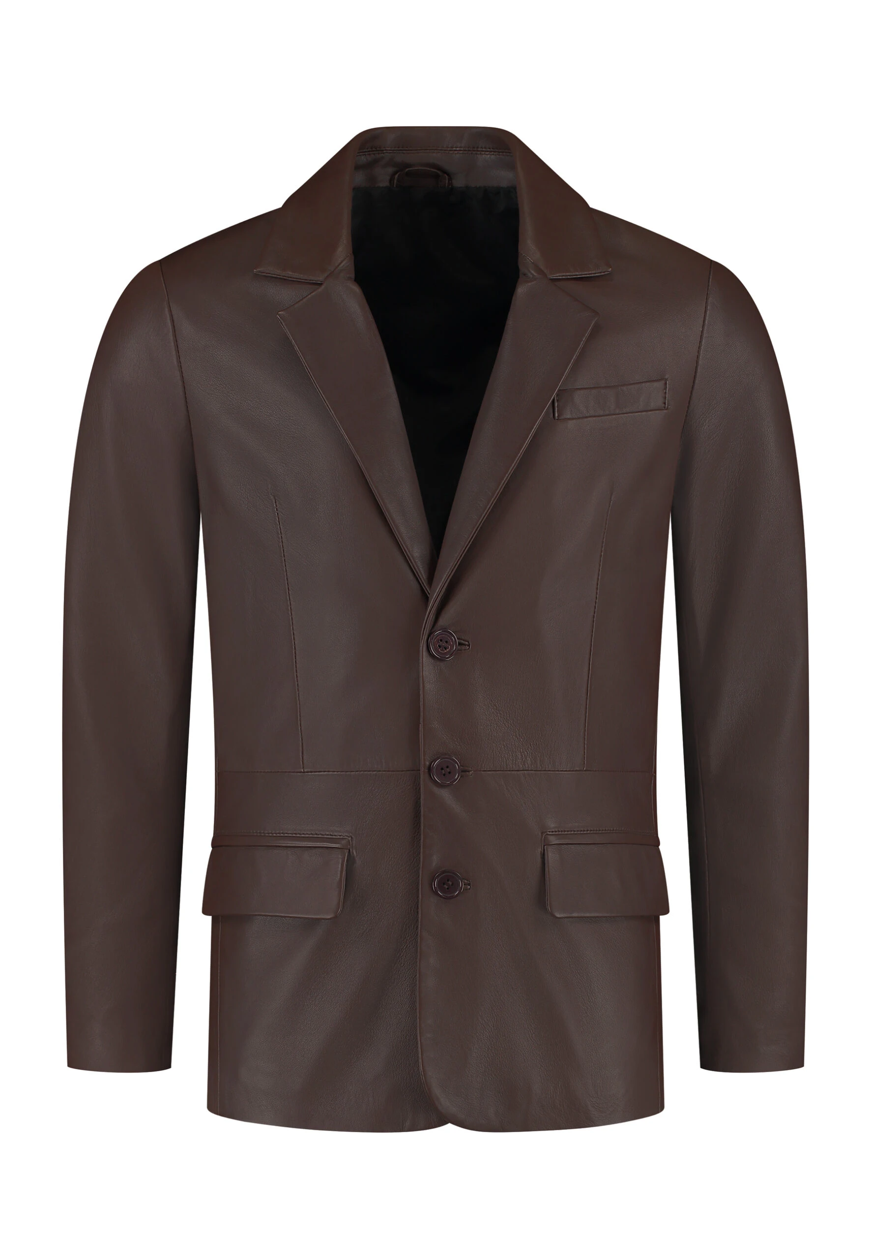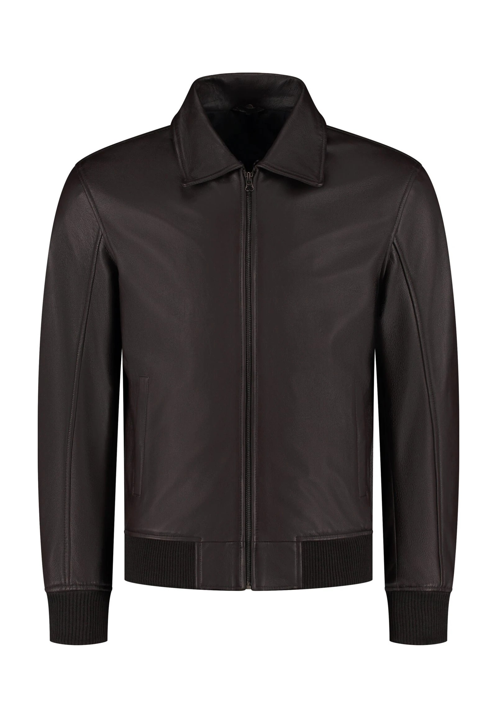 Men’s Puffer Leather Jacket – Venusio – Chocolate Brown Slim Fit Bomber - Image 1