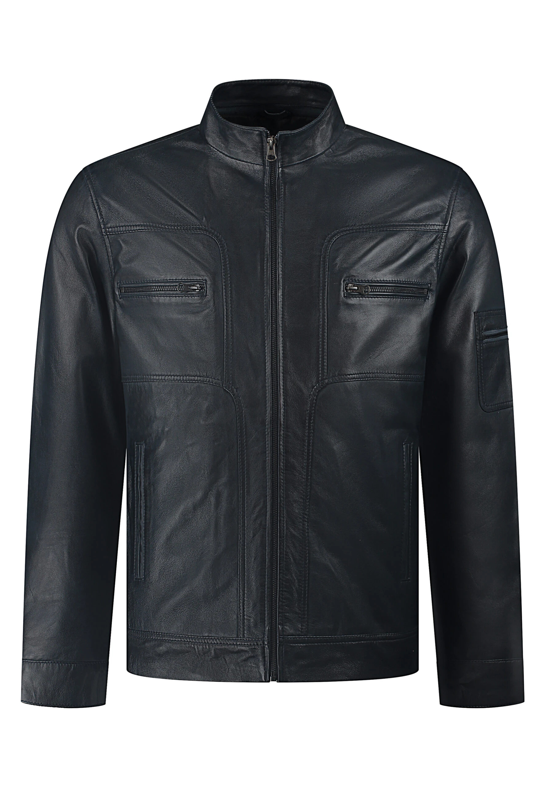 This leather jacket has also two inside pockets: one with a zipper, and one without a zipper.