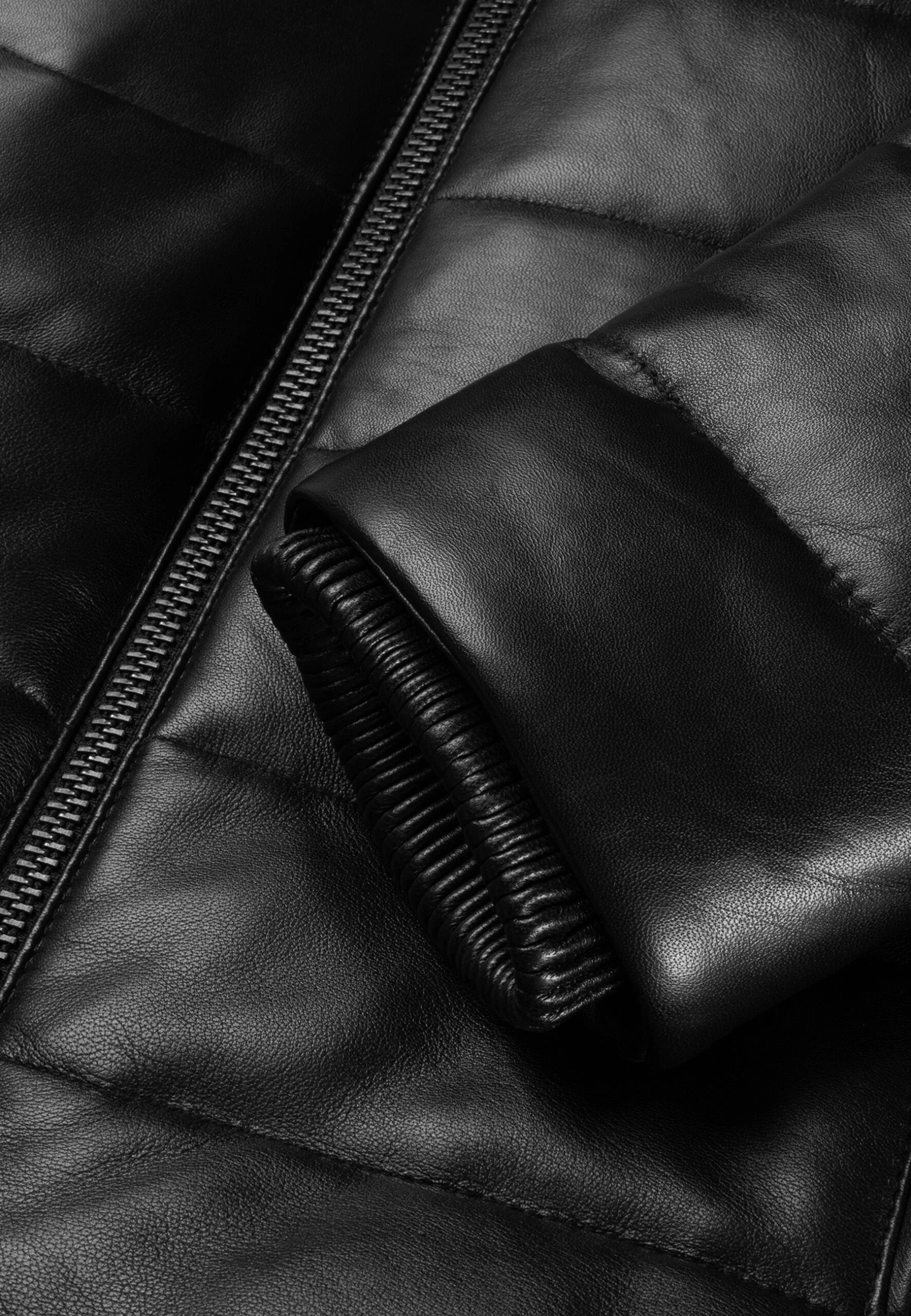 Venusio Men's Black Leather Bomber Puffer Jacket – Quilted Lambskin - Thumbnail 6