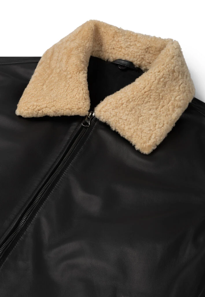 Venusio Men's Black Leather Bomber Puffer Jacket – Quilted Lambskin