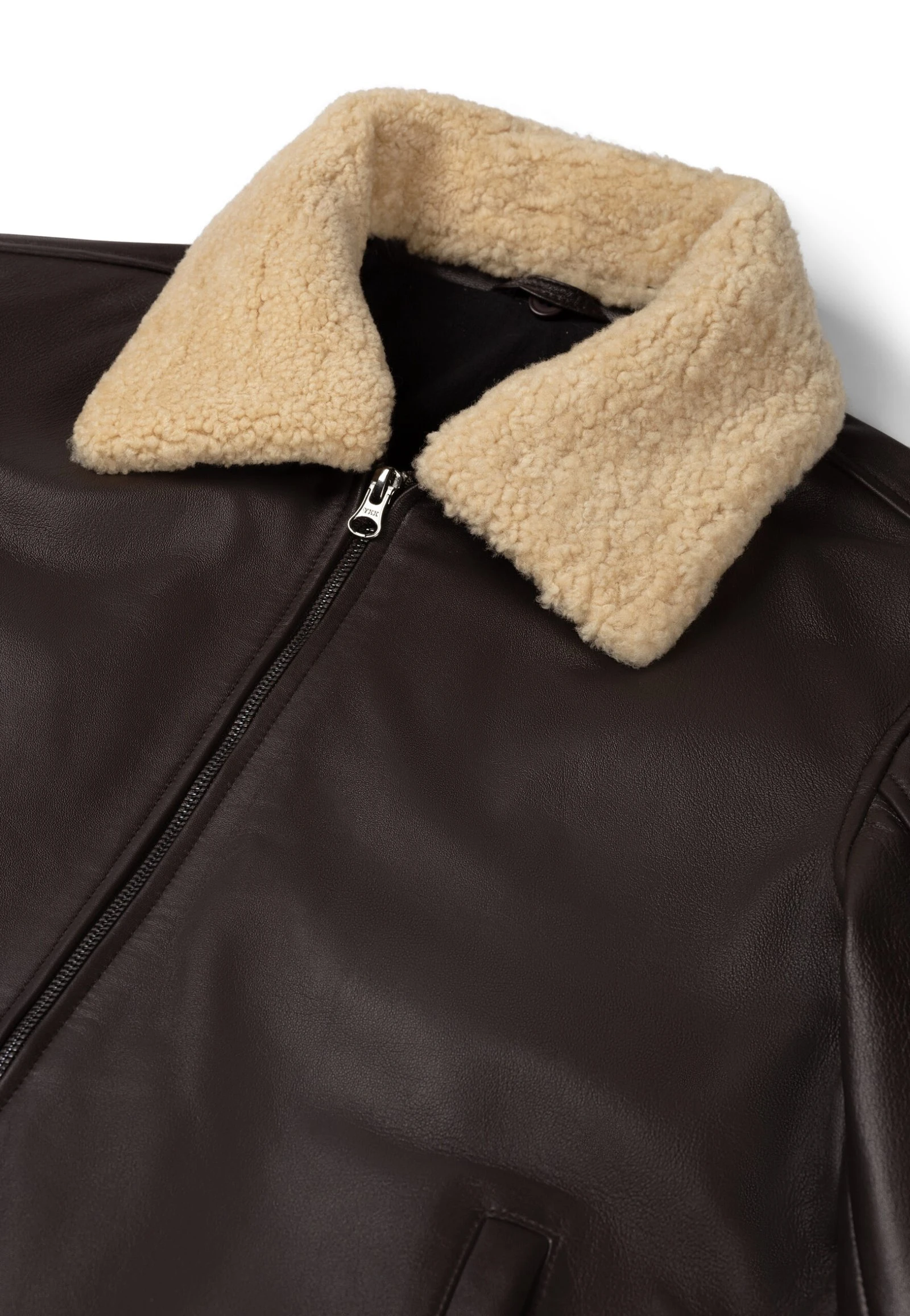 The Commendent – Veste Aviateur Homme en Cuir Marron avec Col Amovible