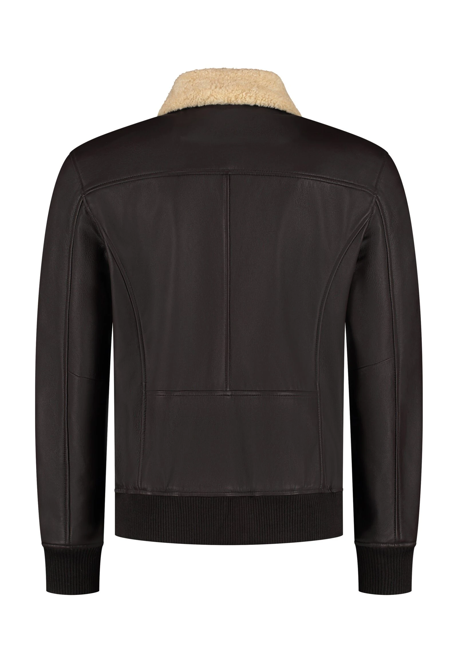 La Commande - Blouson Aviateur Homme en Cuir Marron avec Col Amovible - Miniature 3