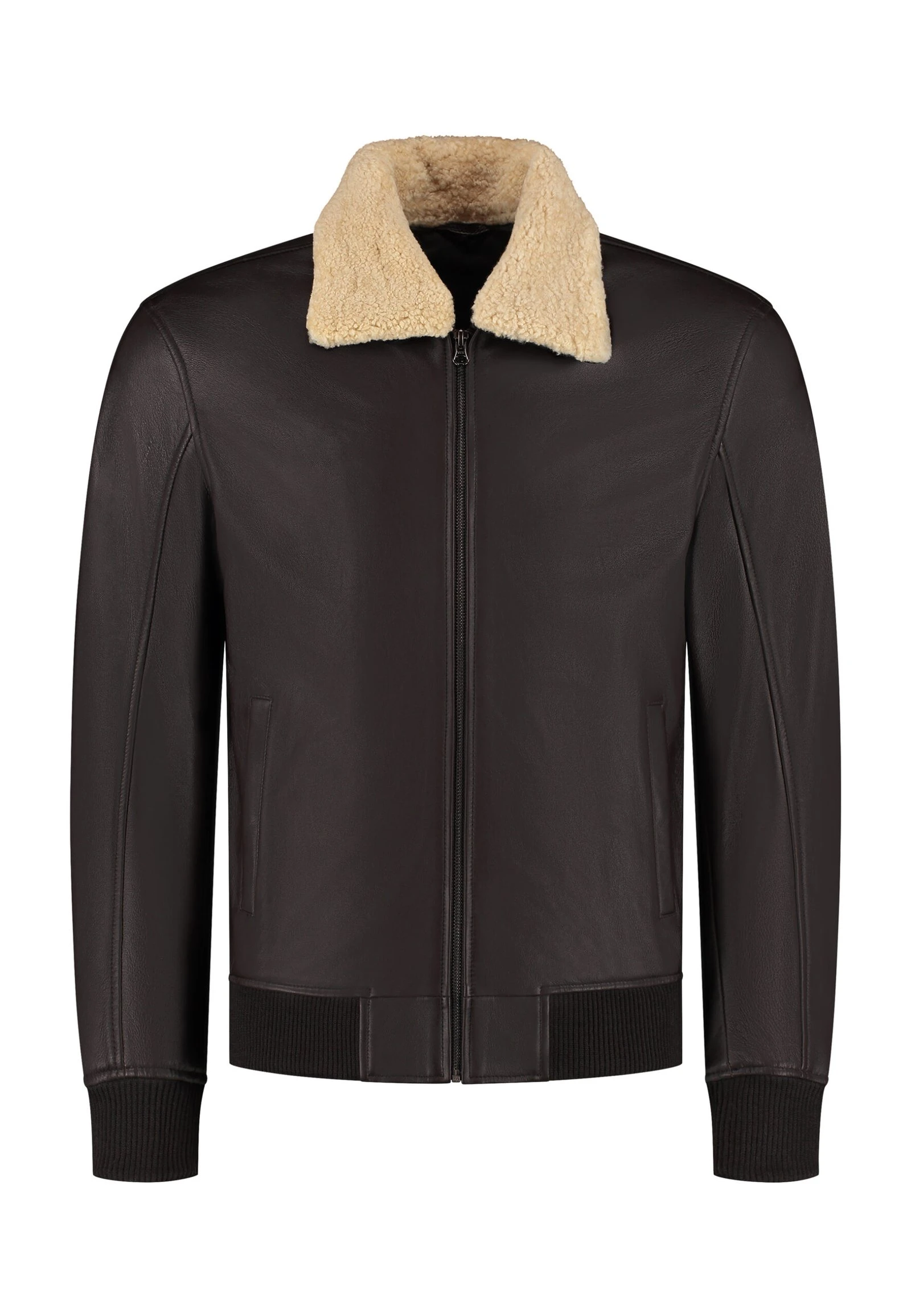 Le Commandant - Blouson Aviateur Homme en Cuir Marron avec Col Amovible - Image 1